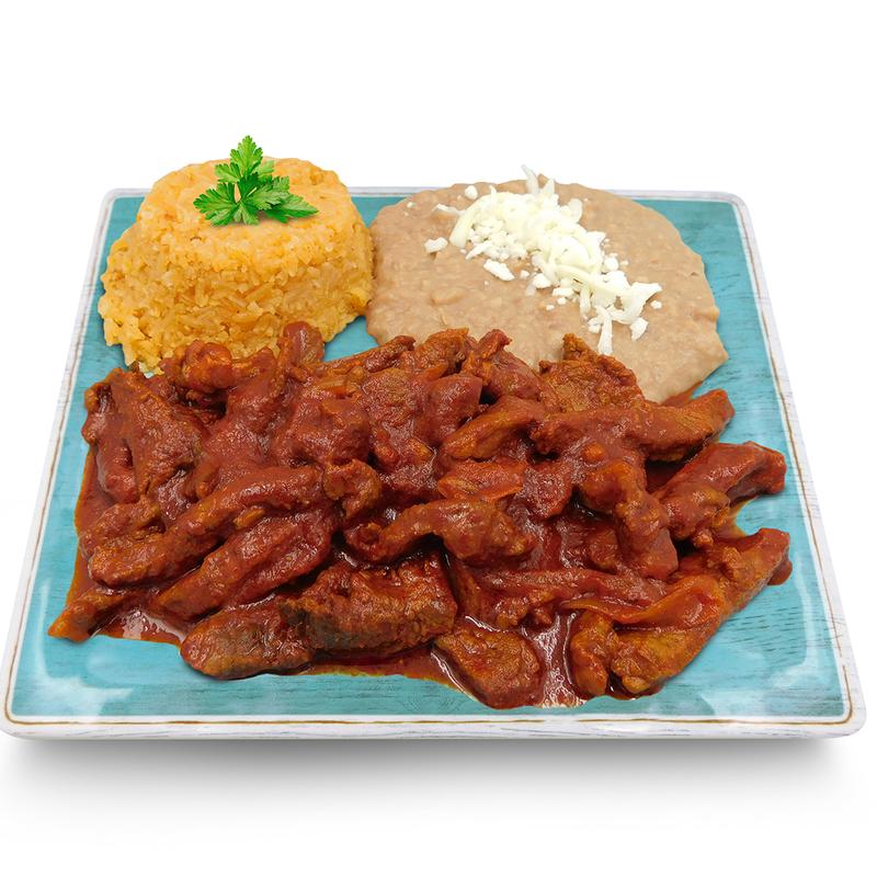 Acompañado con arroz, ensalada y tortillas de maíz o harina