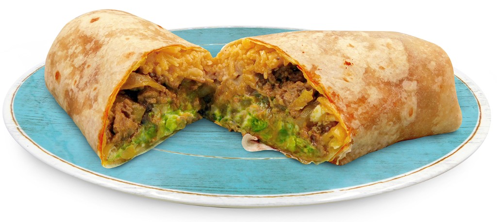 Carne a elegir, frijoles fritos, arroz, queso, pico de gallo, jalapeño · con crema y guacamole +3.25